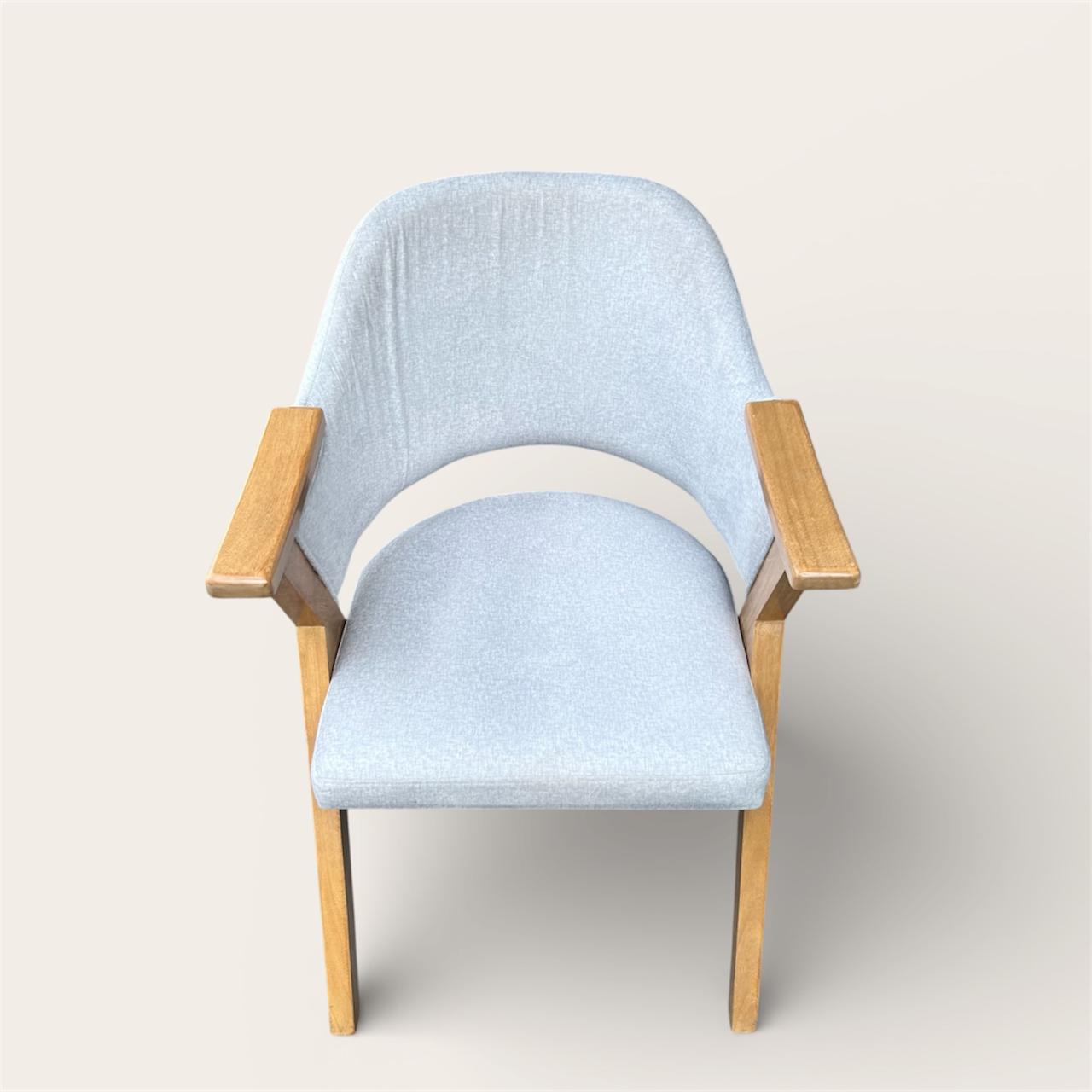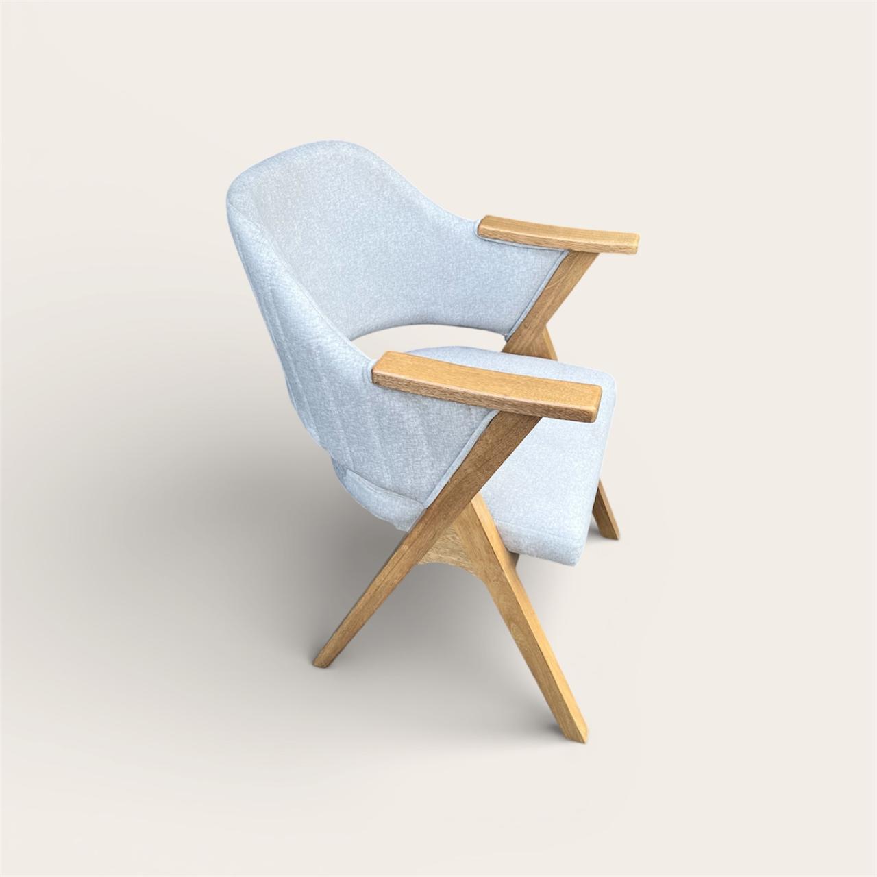 La Silla Órbita Studio destaca por la fluidez de sus formas. El respaldo en forma de media luna parece flotar, conectado sutilmente a las patas traseras de madera. Este diseño minimalista elimina lo innecesario para enfocarse en la ergonomía y la pureza visual. Es ideal para estudios creativos o comedores vanguardistas donde menos es más.