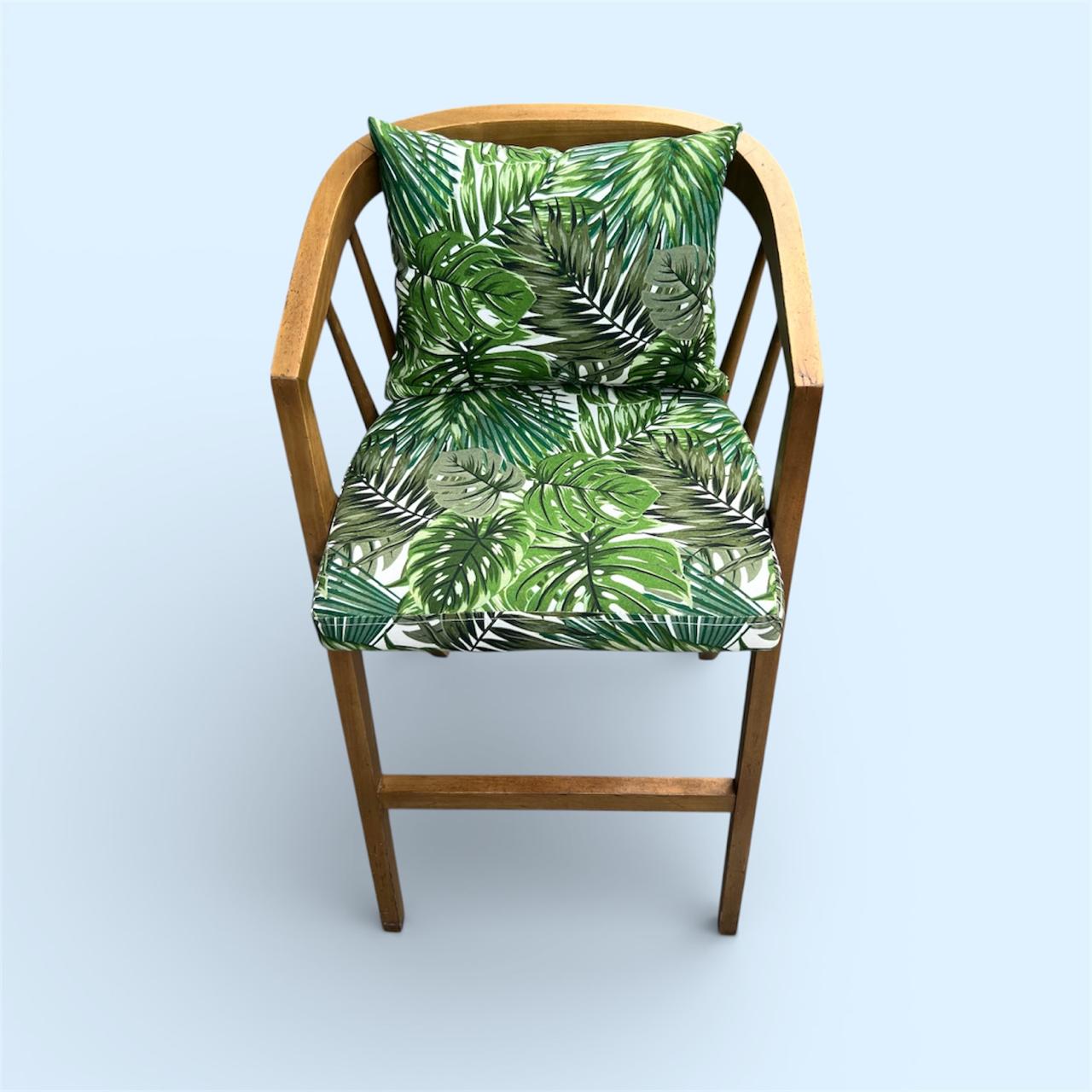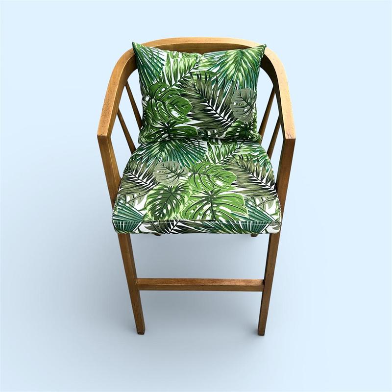 El Sillón Hojas de Ángulo destaca por sus patas tipo compás y un respaldo que fluye orgánicamente hacia los apoyabrazos. Es una obra de ingeniería visual que combina ángulos agudos con un confort envolvente. Su estampado botánico lo posiciona como la pieza perfecta para romper la monotonía de un salón o como pieza de acento en una habitación luminosa.