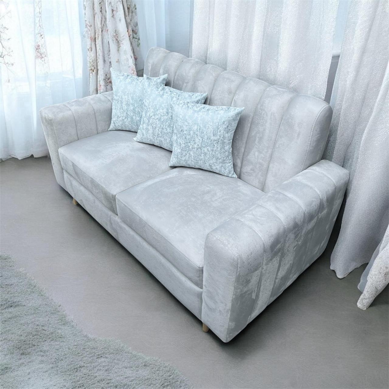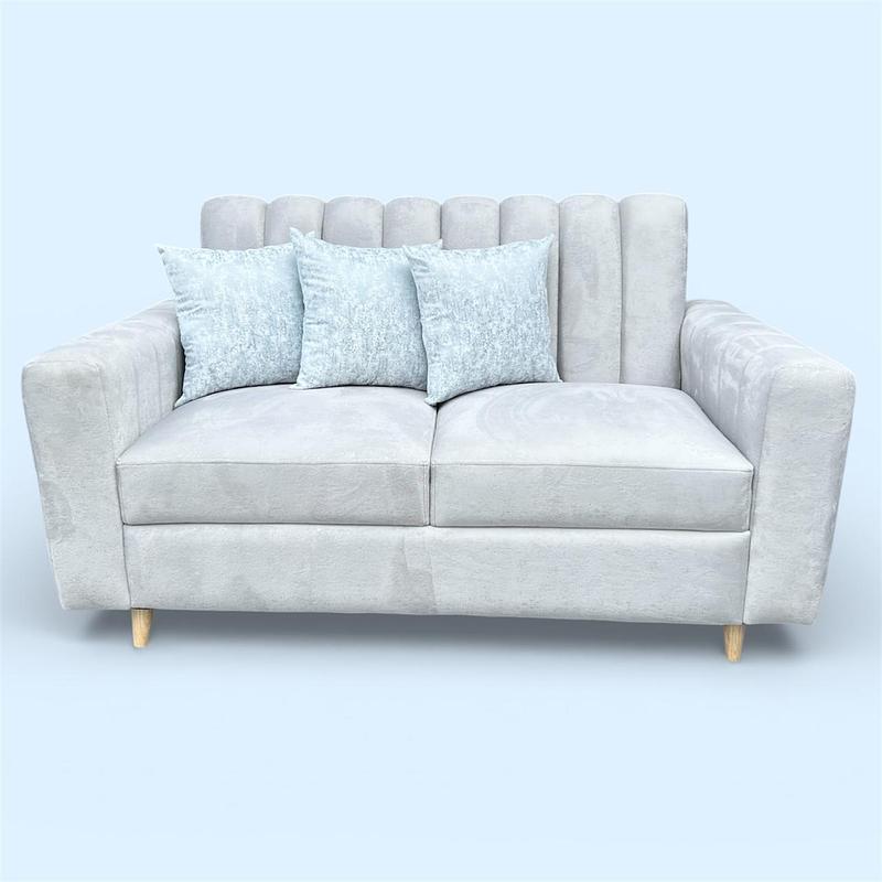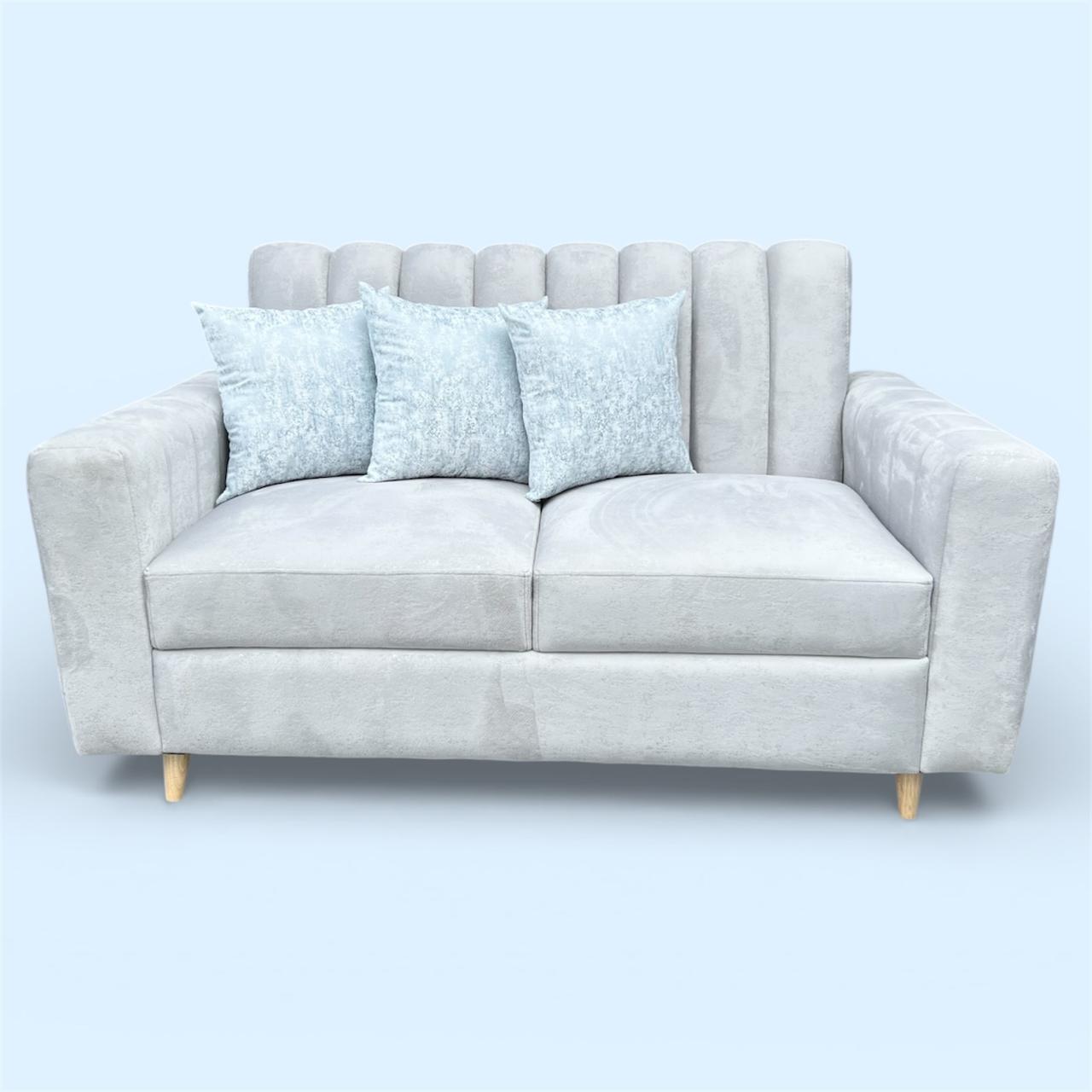 El Sofá Brisa Glacial destaca por su tapizado en franjas verticales acolchadas que recorren tanto el respaldo como los descansabrazos, creando una textura rítmica y moderna. Su silueta robusta de dos plazas ofrece un refugio de suavidad, complementado por cojines decorativos que añaden profundidad visual. Es la pieza central perfecta para salas que buscan un equilibrio entre el minimalismo frío y la calidez táctil, evocando una estética de lujo contemporáneo y serenidad.